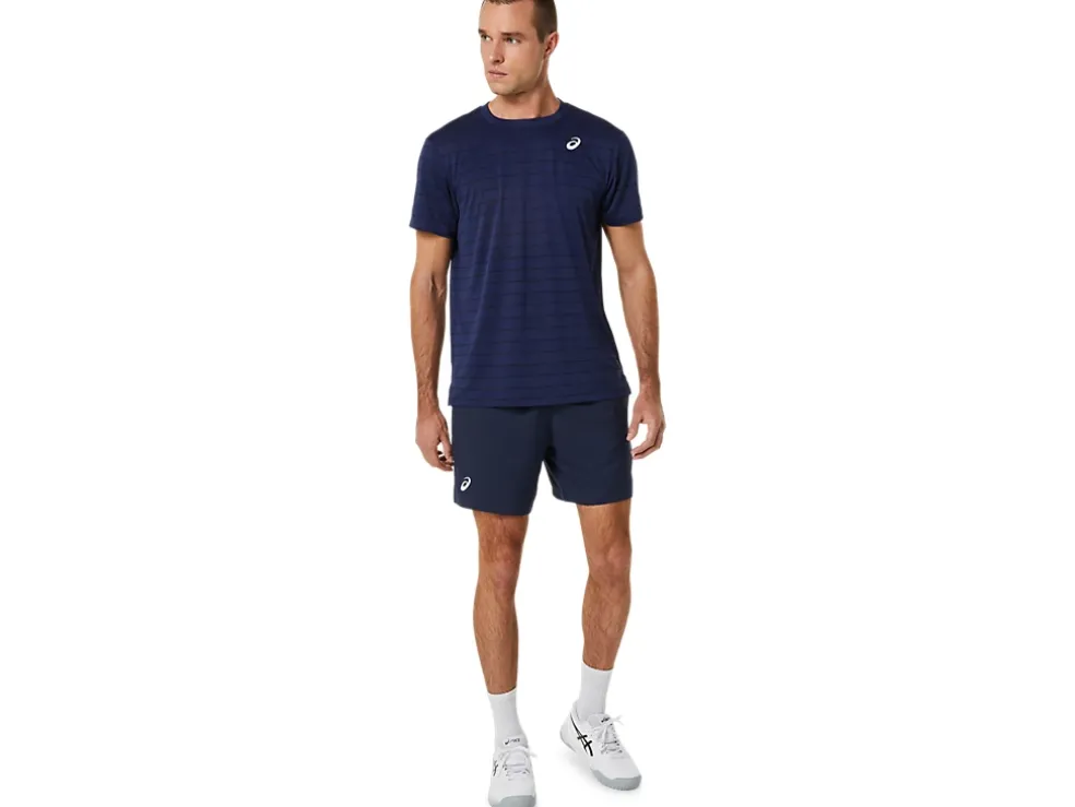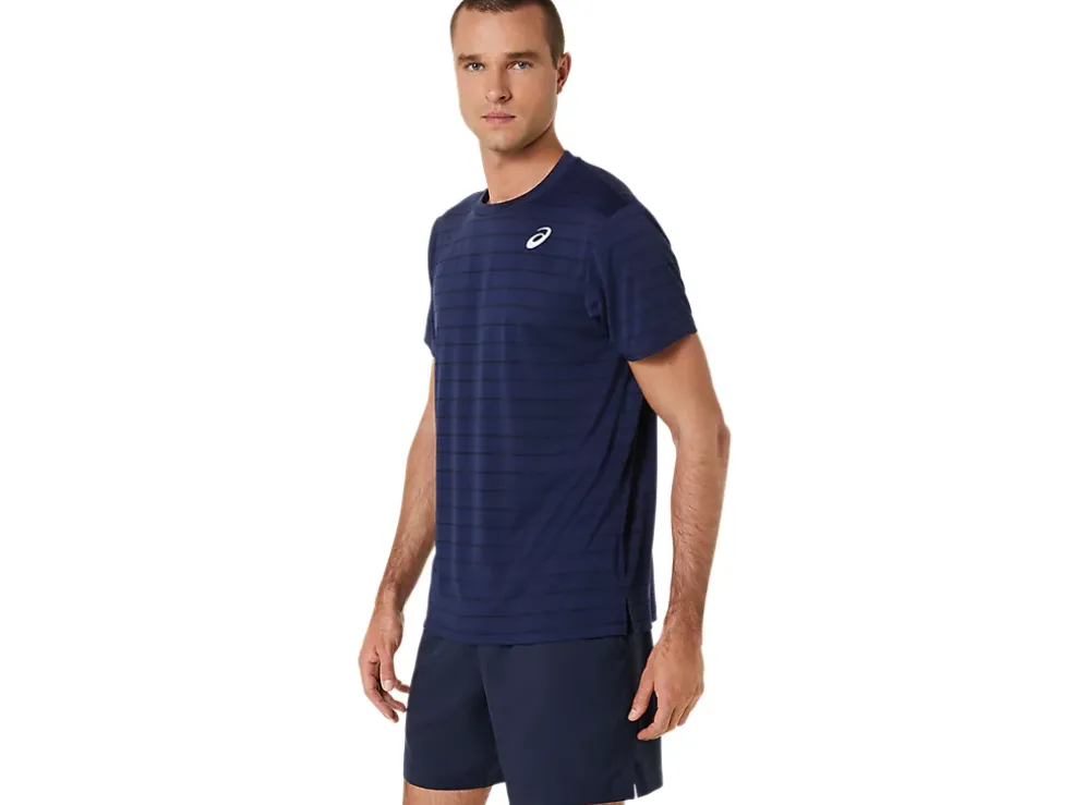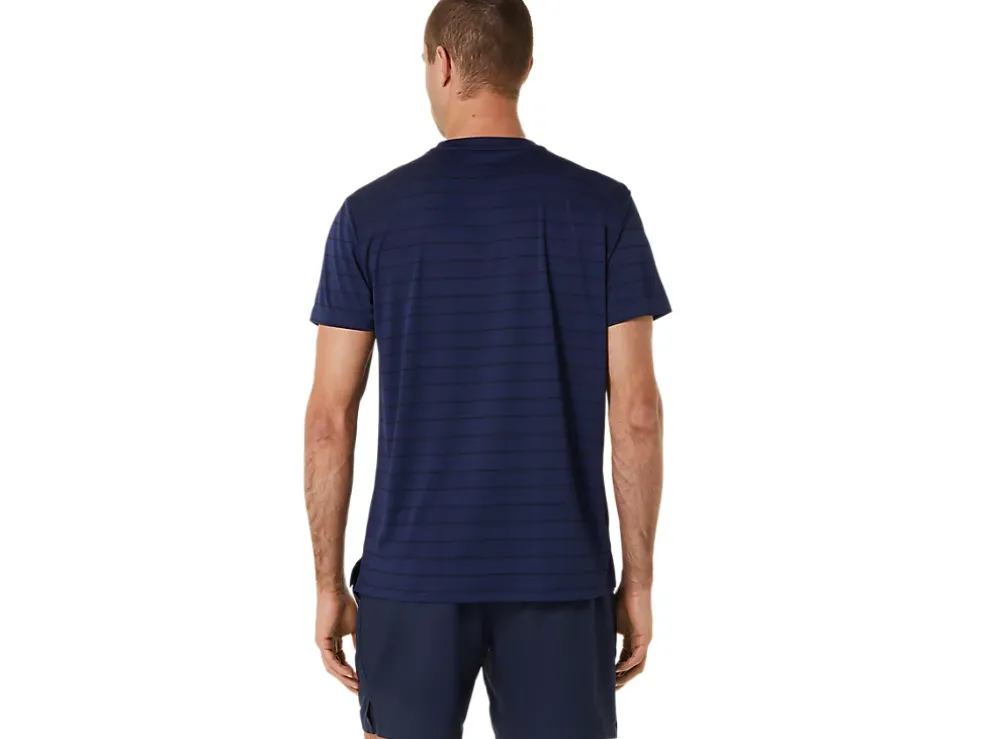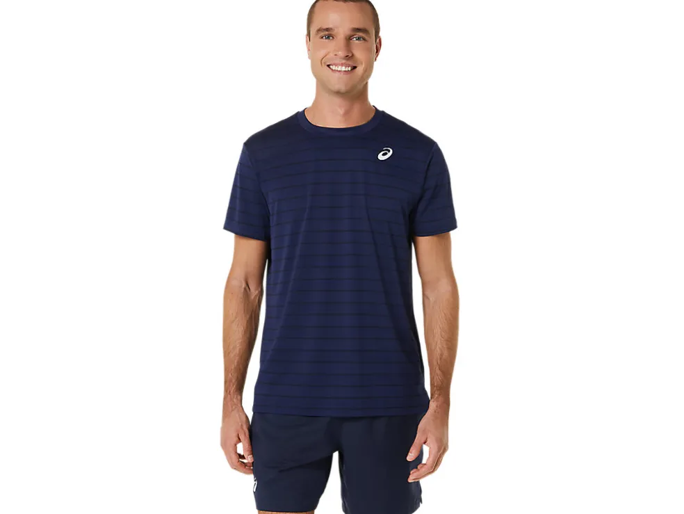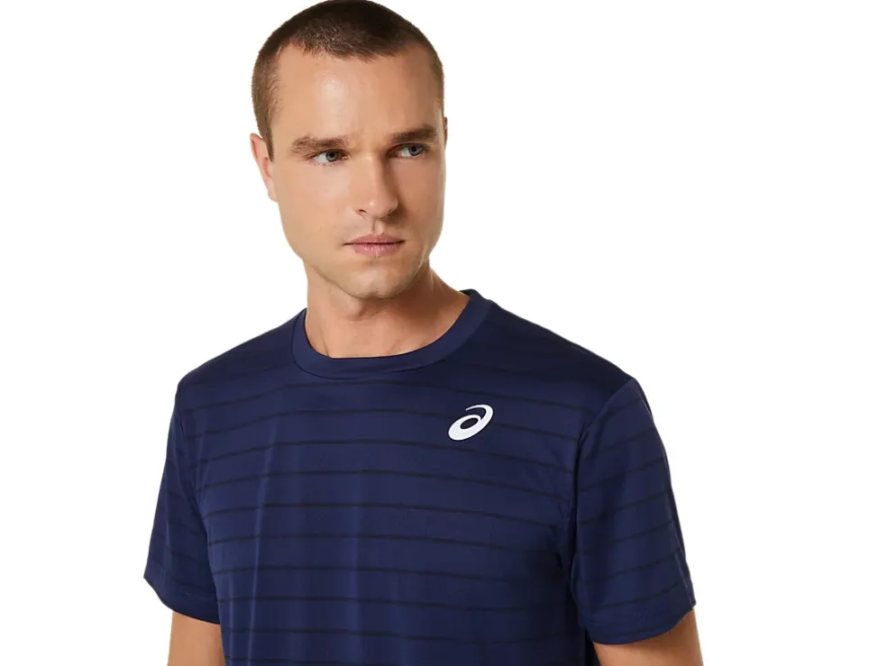 De COURT STRIPE SHORT SLEEVE TOP heeft vochtregulerende eigenschappen die verkoelend werken.