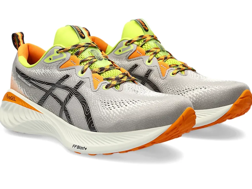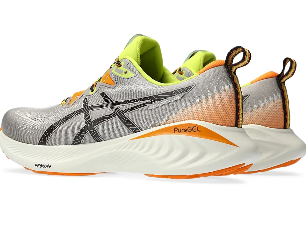 >De GEL-CUMULUS 25 TR-schoen uit de NATURE BATHING-collectie is geïnspireerd door het rustgevende kleurenpalet van een bos. Het is een veelzijdige sportschoen waarmee je vlotjes overschakelt van de weg naar gemakkelijke looppaden.We hebben de tussenzool verbeterd met onze nieuwe PureGEL technologie en FF BLAST PLUS demping. Deze materialen helpen je om zachter te landen en krachtiger af te zetten tijdens je training.Dankzij het hybride patroon op de buitenzool is de schoen ideaal voor hardlopen op straat en de trails.