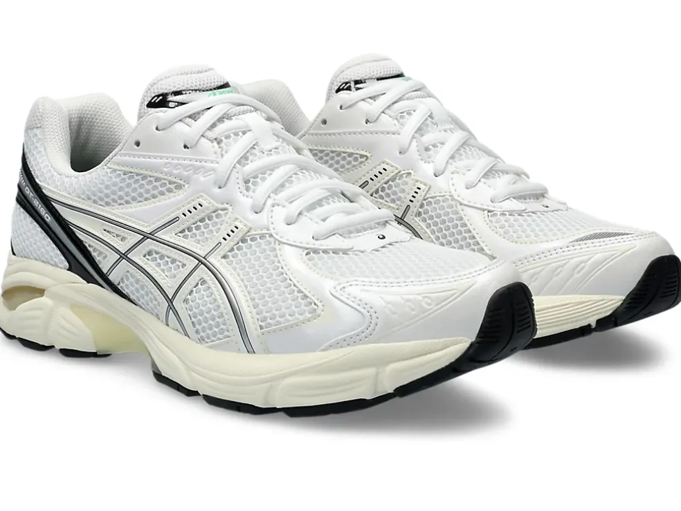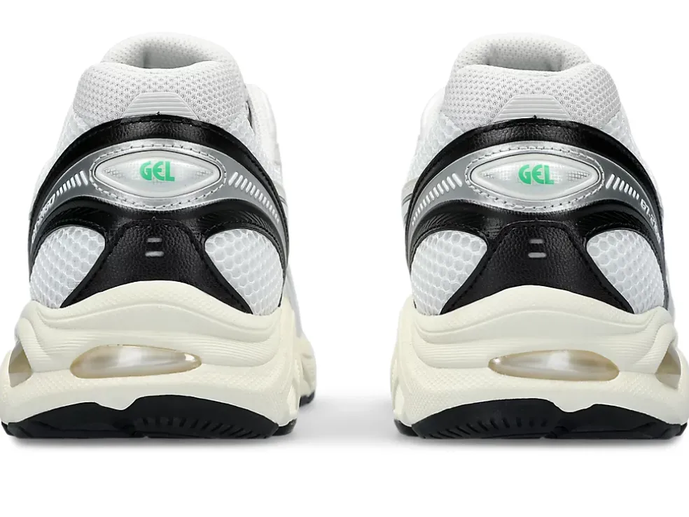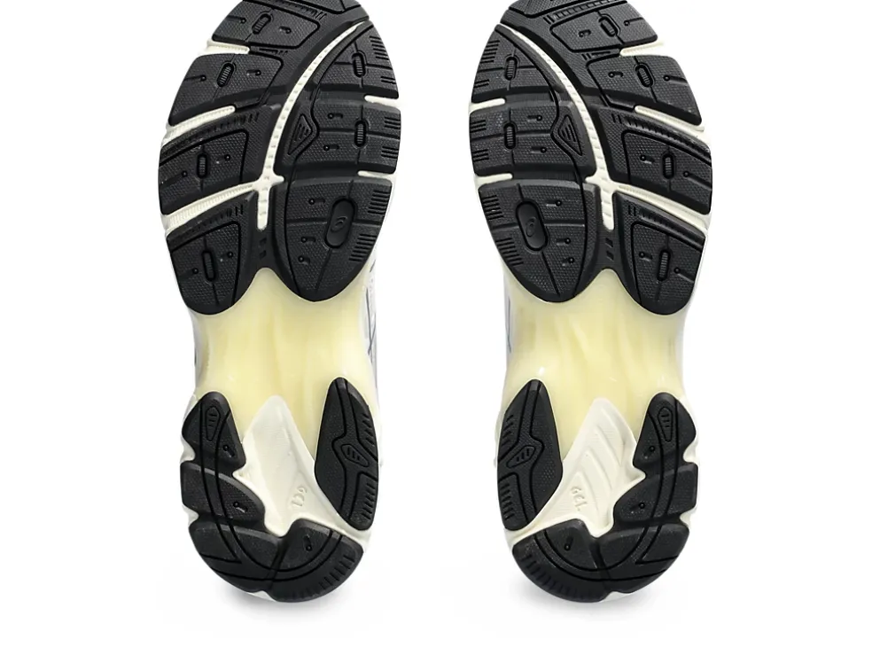 Maar ook andere invloedrijke details uit de jaren 2010 zoals een gesegmenteerde tussenzool en inzetstukken met GEL technologie. Dit levert een schoen op met industriële look én geavanceerde demping.
